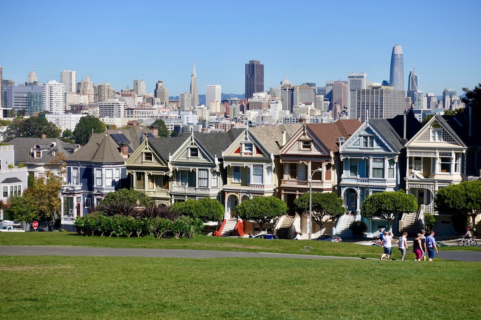 This “Postcard Row” of Victorian houses is directly located across from Alamo Square park.